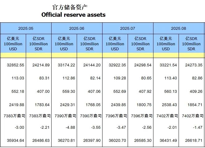 央行公布数据显示,中国8月末黄金储备7402万盎司,7月末黄金储备报7396万盎司;为连续第10个月增持黄金。