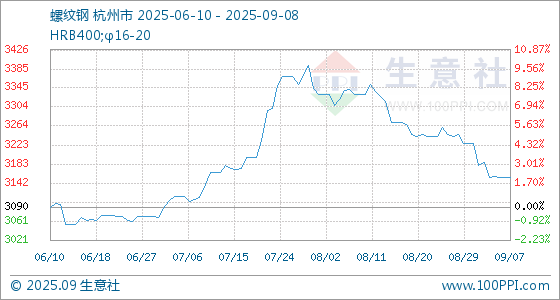 9月8日生意社螺纹钢基准价为3154.50元/吨