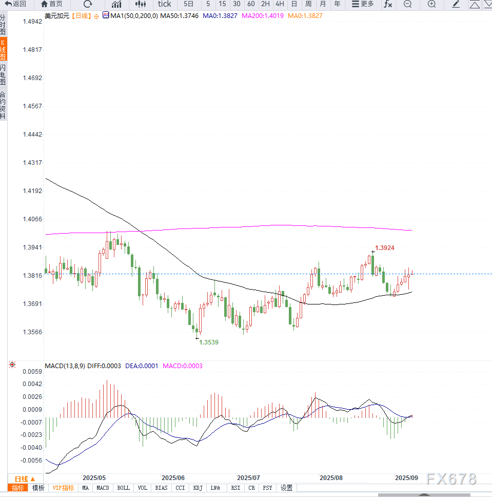 编辑观点:美元兑加元短期走势由加元疲弱和美联储降息预期共同驱动。加拿大就业持续疲软,BOC政策宽松预期仍将为美元提供支撑,但美联储降息预期可能限制美元上行动能。短期内,汇价可能在1.3800-1.3900区间震荡整理。