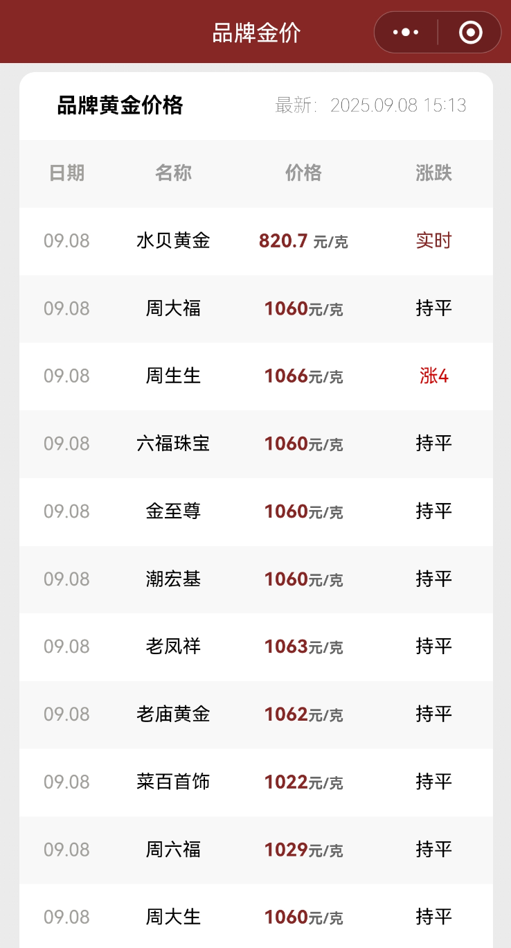 随着国际金价的持续攀升,金饰价格也同步走高。截至发稿,周生生、老凤祥、老庙黄金等多家品牌黄金饰品价格超过1060元/克,周大福、潮宏基、周大生等黄金饰品价格为1060元/克。