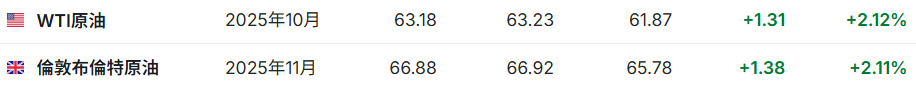 3. 截至发稿,WTI原油涨2.12%,报63.18美元/桶。布伦特原油涨2.11%,报66.88美元/桶。