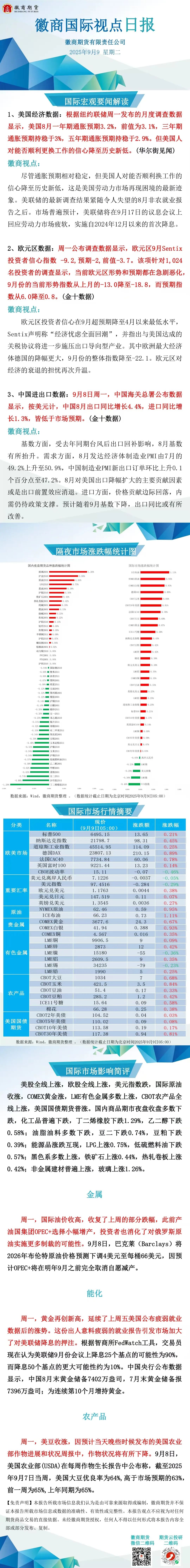 【徽商国际视点】黄金再创历史新高!中国8月对美国出口降幅扩大!美联储最新调查显示消费者8月通胀预期相对稳定!