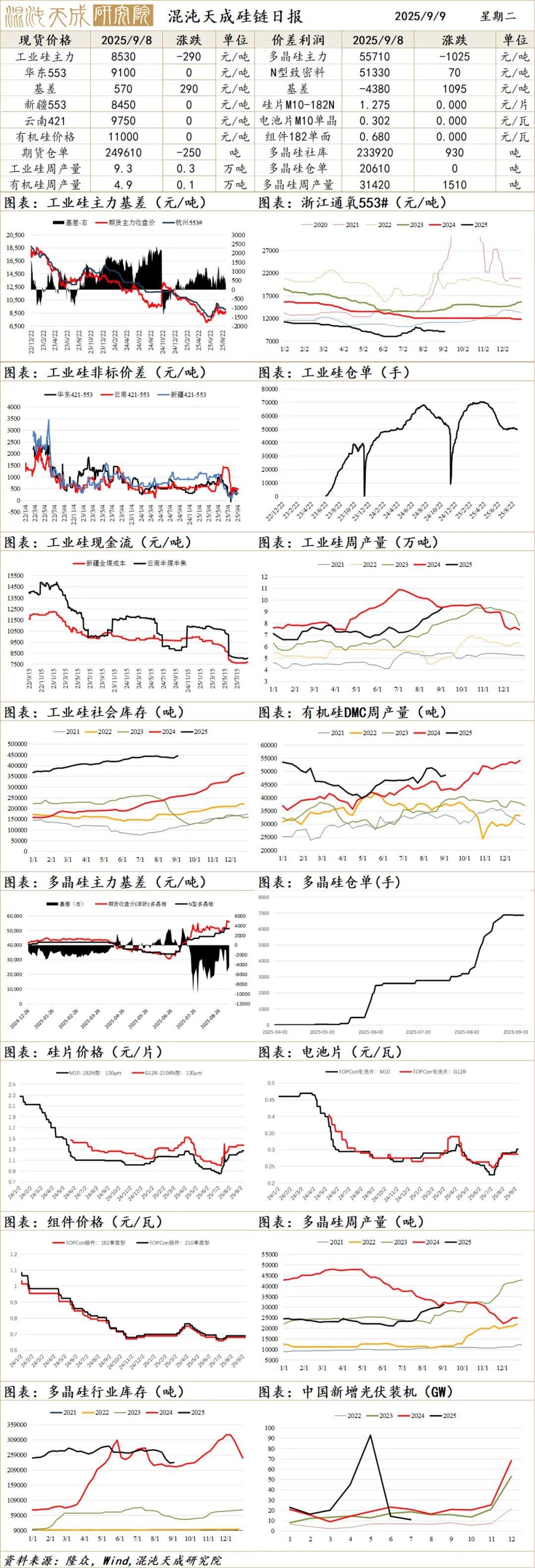 1、反内卷驱动加强。上周协鑫声明近期会明确收储消息公布后,每天均有小作文推进。目前看仍按预期推进,9月定方案、平台公司,10月开始产能淘汰。关注近期消息,关注11、12日包头会议。