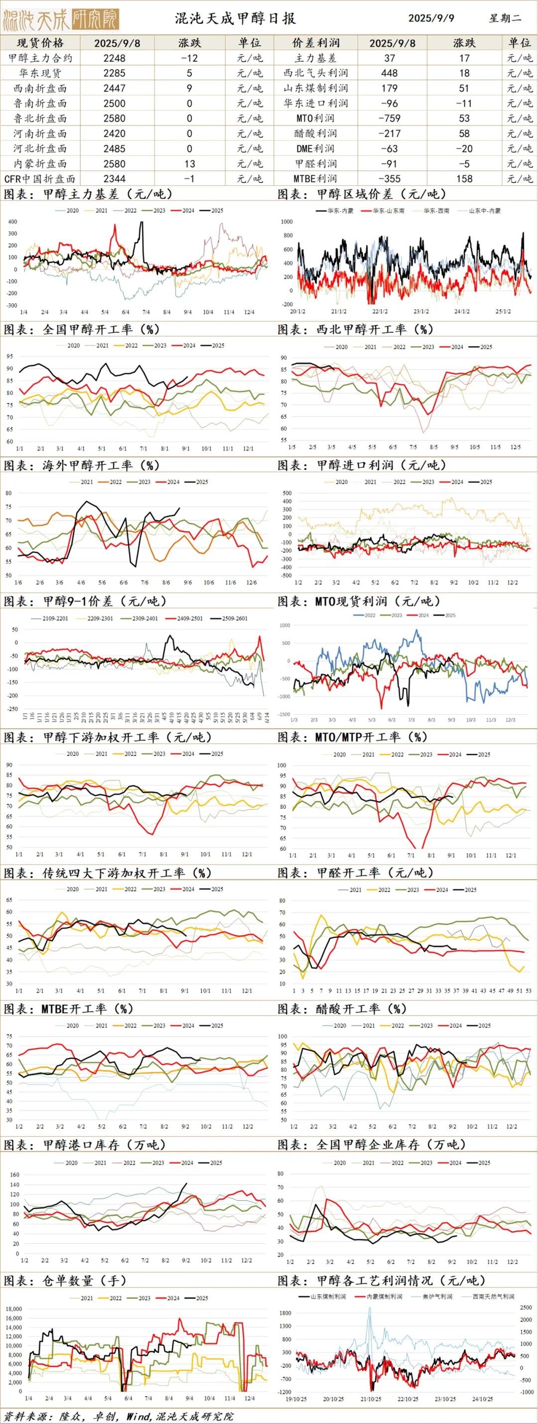 供给:国内高利润高供应,本周开工继续回升。至9月中预计仍有2%弹性。海外开工高位,8月160+万吨水,9月150+万吨;潜在利多是预计伊朗仍会提前限气(传10月),影响进口。反内卷对甲醇真实影响不大,主要受焦煤驱动。