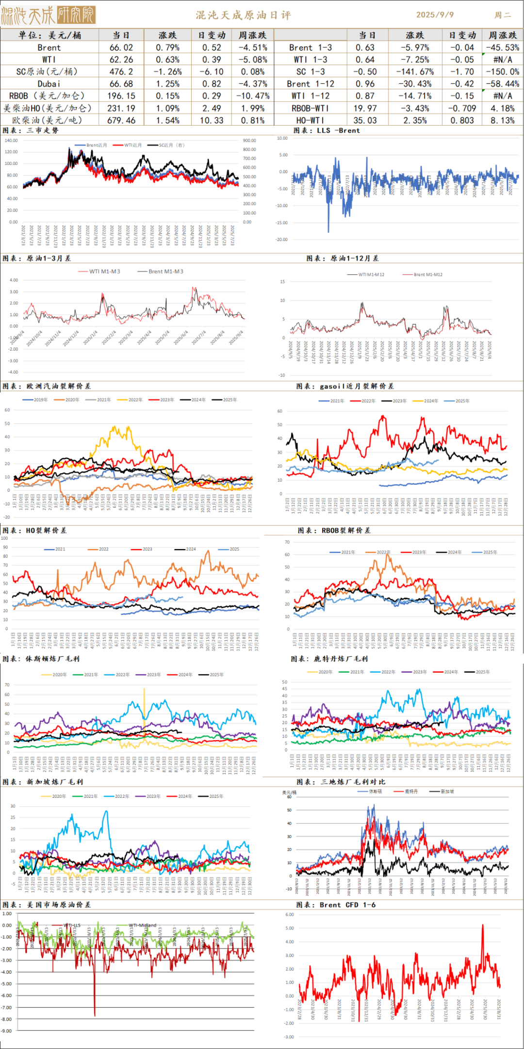 供应端:OPEC+新一轮会议宣布将在10月开始逐步释放另外166万桶/日产能,每月增产13.7万桶/日,沙特调低对亚洲OSP报价,争夺份额意图明显。欧盟将和美国讨论对俄罗斯的新一轮制裁,市场担心供应中断风险。俄乌战争继续,乌克兰袭击俄罗斯炼油厂和天然气站等能源设施,影响俄罗斯成品油出口。美国在委内瑞拉附近海域进行军事行动,地缘局势紧张。OPEC+在9月将继续增产54万桶,将220万桶/日额外减产产能完全恢复,12月之后再考虑另外166万桶/日自愿减产是否回归。
