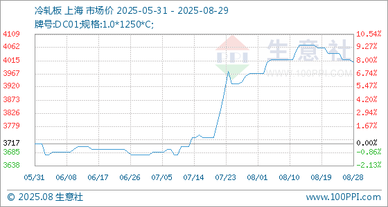 8月29日生意社冷轧板基准价为4010.00元/吨