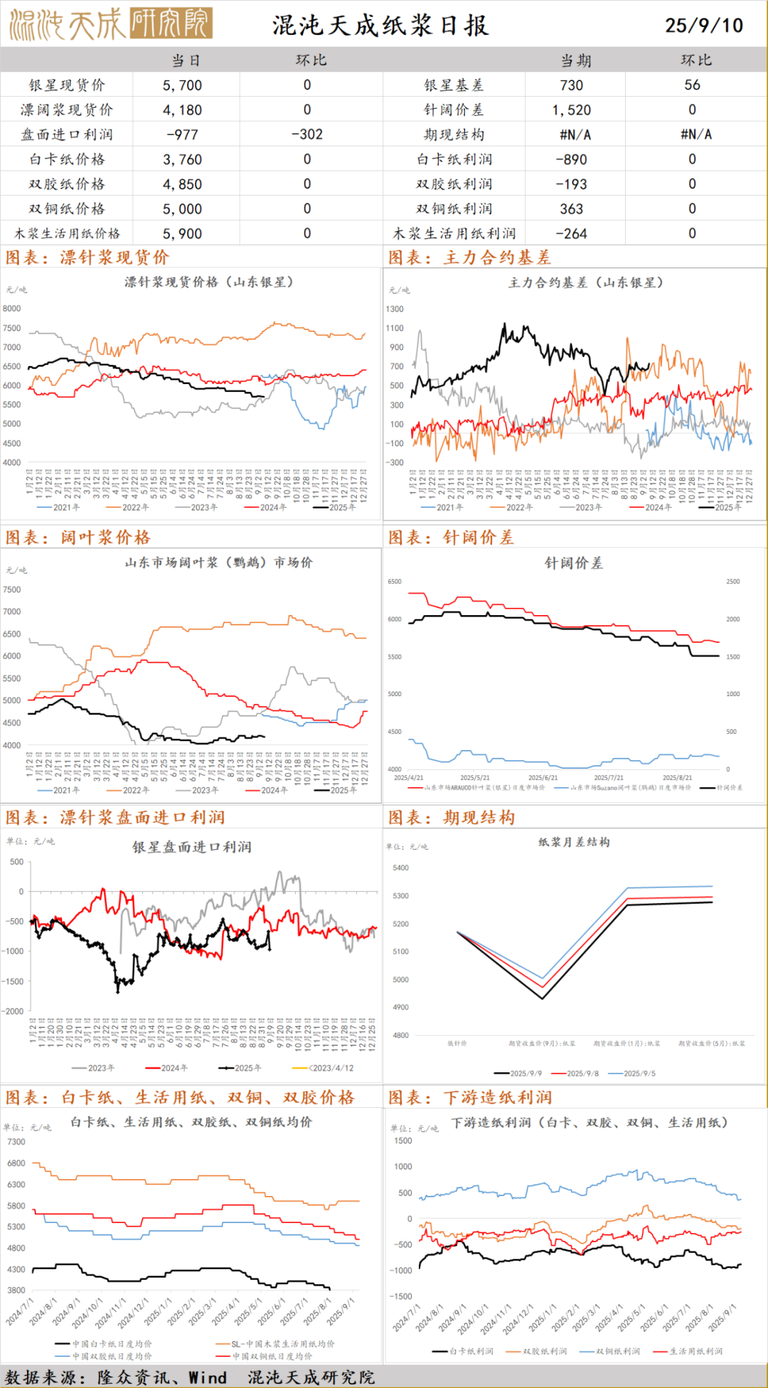 估值上,各合约的上市挂牌基准价为4218元/吨,目前现货交割品市场价4500元/吨(包含了运费等),从季节性上看,每年4季度现货平均上涨幅度为4.8%,盘面2601合约下方支撑在4000元/吨(半一体化纸厂现金流成本约4000元/吨,全一体化现金流成本约3800元/吨),上方压力在4600元/吨(叠加旺季涨价预期)