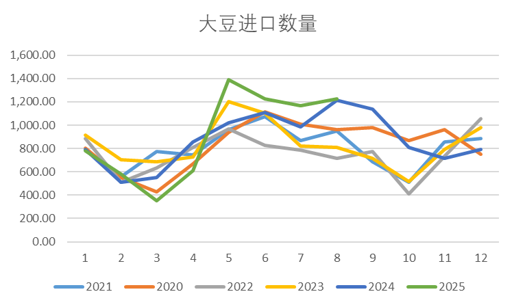 中国海关公布的数据显示,2025年8月进口大豆进口总量为1227.90万吨,较上月同期的1166.60万吨增加61.30万吨,进口量环比上月增加5.25%。8月进口大豆进口量较上年同期的1214.39万吨,增加了13.51万吨,增加1.11%。数据统计显示,2025年1-8月进口大豆累计进口总量为7332.10万吨,较上年同期累计进口总量的7047.84万吨,增加284.26万吨,增加了4.03%;2024/25年度(10-8月)累计进口总量为9650.31万吨,较上年度同期累计进口总量的9337.84万吨,增加312.48万吨,增加了3.35%。