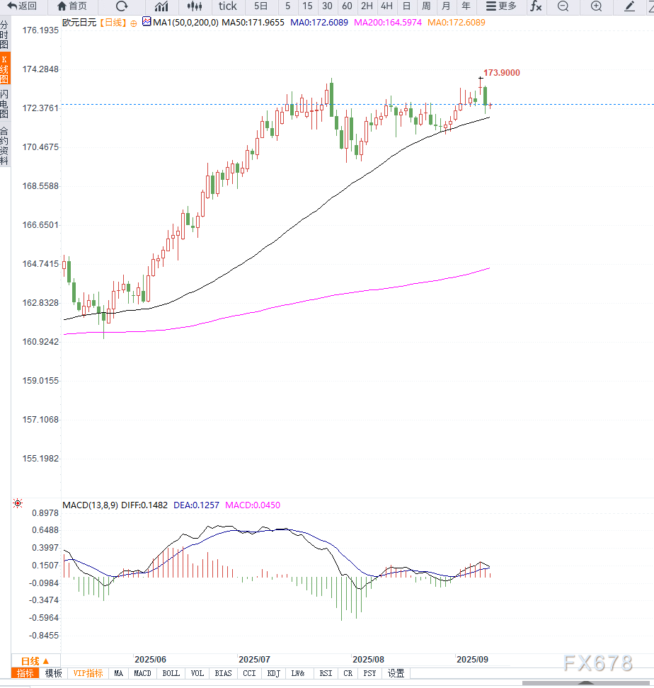 美联储降息预期叠加日本制造业信心回升,欧元兑日元维持高位震荡