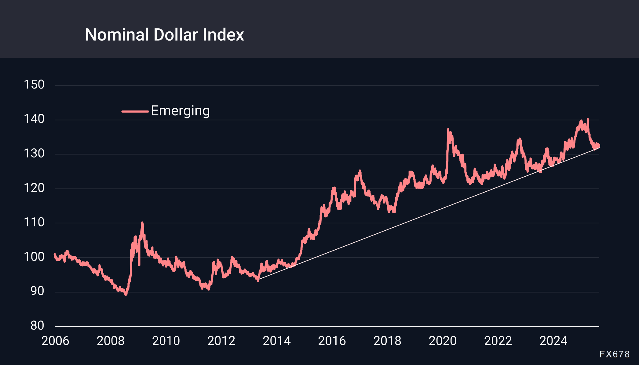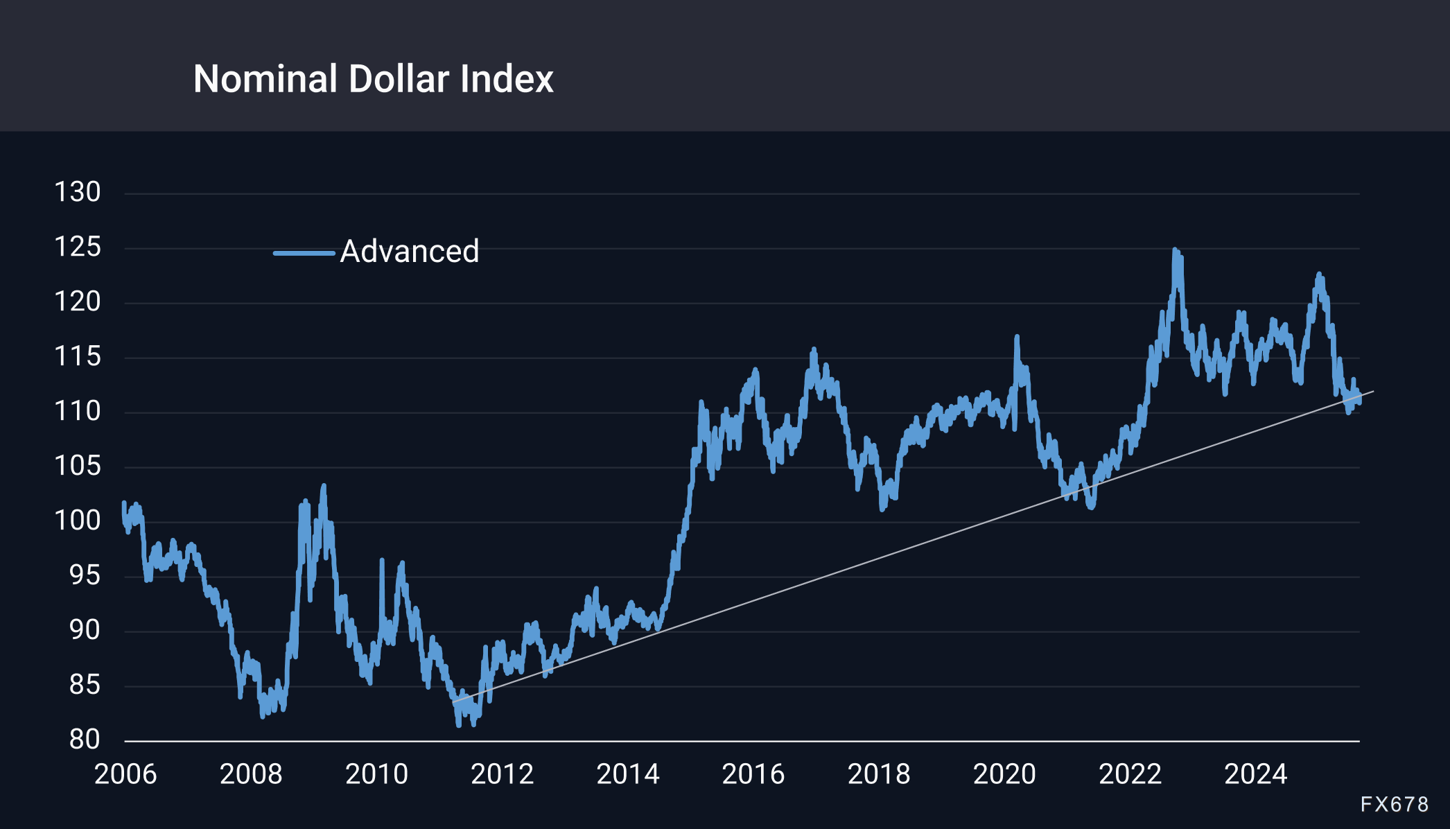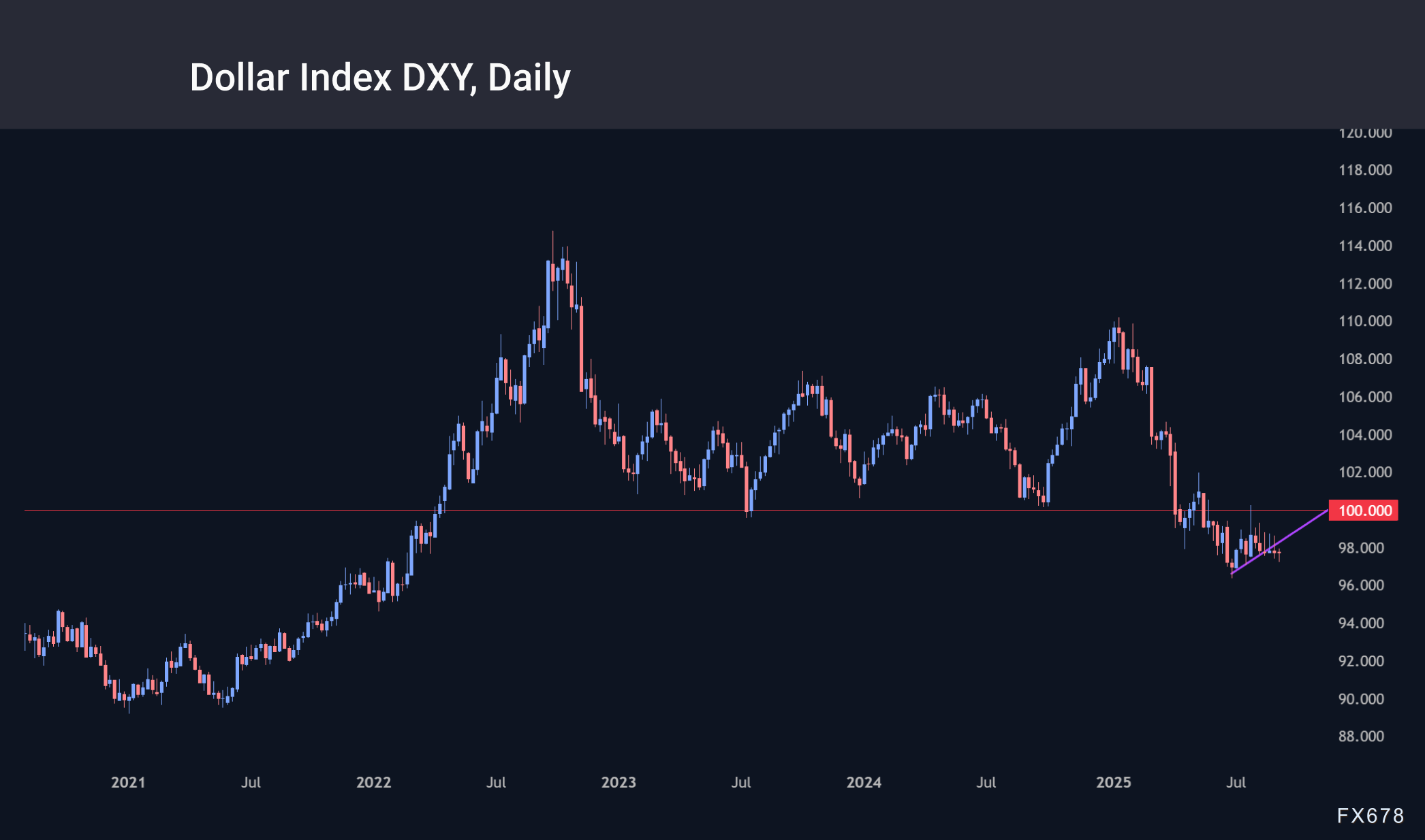 严格来说,在美元跌破关键支撑位之前,就断言其“衰落”还为时过早。从当前位置来看,美元甚至可能成为一个具有长期上涨潜力的理想入场点。