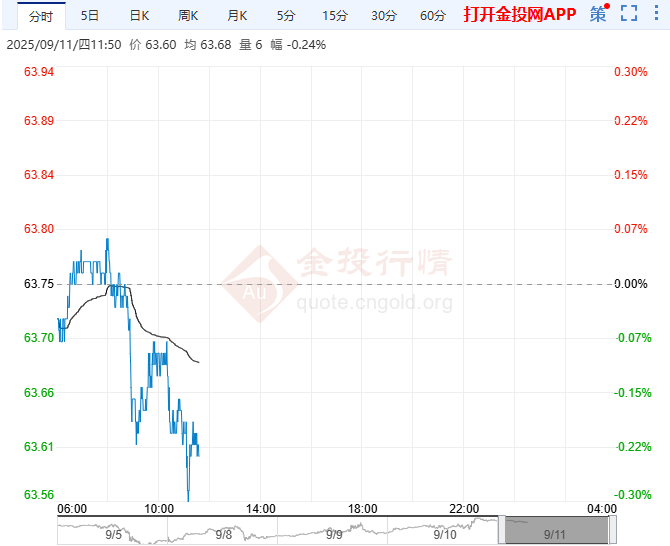 截止北京时间9月11日上午11:50分,WTI原油现报63.58美元/桶,跌幅0.27%;布伦特原油现报67.44美元/桶,跌幅0.24%。