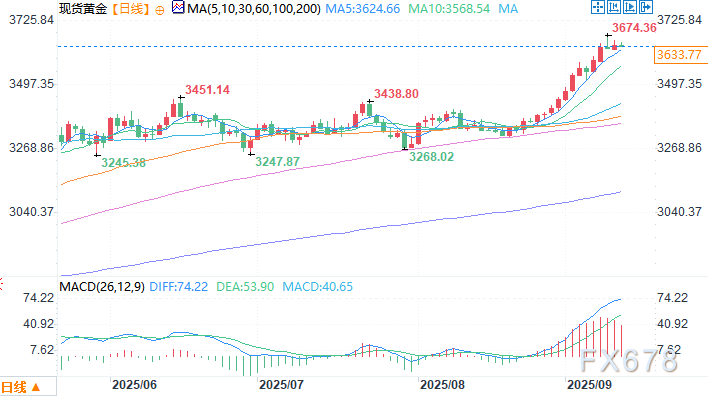 北京时间9月11日13:26 现货黄金 报 3629.76 美元/盎司。