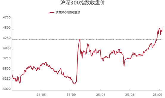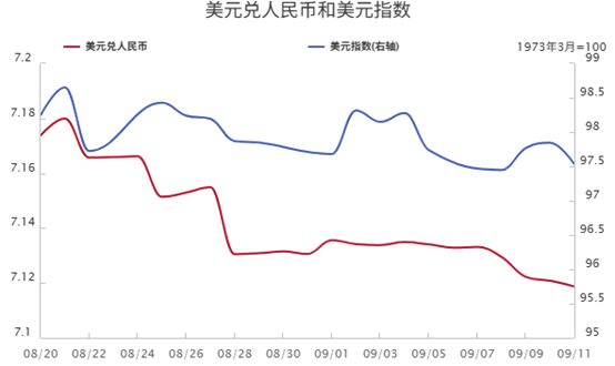 近期国内金融市场发生较大变化。股市接连创新高,以沪深300指数为代表突破4500,在经济本面数据仍相对平淡,政策未出现去年“924”类似的重磅加码情形的背景之下,股指走势整体突破去年前高,两市成交额最高站上三万亿元。而汇率市场,美元兑人民币汇率走势自8月底开启一轮大幅升值,一定程度与美元指数走势脱钩,在岸美元兑人民币由7.18左右下降至7.13左右的水平,仅8月最后一周就升值0.5%左右,而美元指数仅下降0.1%,基本在98附近震荡。
