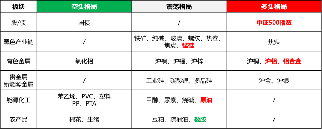 关注品种:铜(多头格局)、氧化铝(空头格局)、铝(多头格局)、铝合金(多头格局)、镍(震荡格局)、锌(震荡格局)