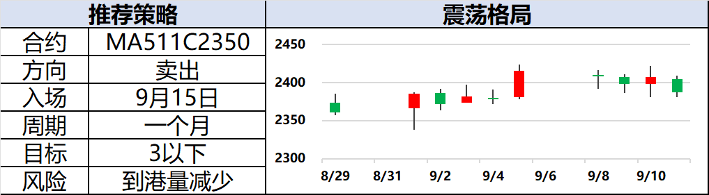甲醇:8月至今每周到港量都保持在40万吨以上,9月下旬到港量依然较多,除非华东停车烯烃装置重启,否则港口库存仍将继续积累,加剧供应压力。弱现实,强预期,短期走势偏弱。