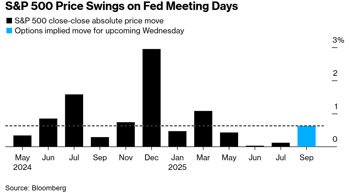 市场普遍预期美联储将于周三降息,而股票、交易所交易基金(ETF)及指数的季度期权将于周五到期——一些分析师认为此举将清空做市商头寸。虽然这些事件通常对押注市场波动加剧的交易员颇具吸引力,但此次他们预计波动性不会立即回归。