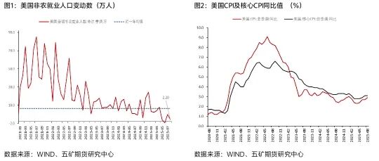 美国8月非农就业数据大幅低于预期,新增非农就业人口数仅为2.2万人,低于预期的7.5万人以及前值的7.9万人。且六月份的非农就业人口变动数被调整为减少1.3万人,是2020年末以来的首次下降。本次非农就业分项中多个行业就业总人数出现下降,商品生产就业分项下降2.5万人,其中采矿业、建筑业以及制造业就业人数均录得减少。服务业分项情况也不容乐观,批发业、信息业、金融服务和专业及商服分项就业人数均出现回落,仅教育和保健就业呈现相当韧性,服务部门总就业人数上升6.3万人。同时,政府就业总人数出现1.6万人的减少。美国劳工统计局数据指出,在2024年4月至2025年3月的区间内,美国私人部门非农就业数据下修88万人,政府部门就业下修3.1万人。总体非农共计下修91.1万人,大幅高于市场预期的70万人、美国财政部长贝森特预计的80万人以及前值的59.8万人。而在周度就业数据方面,美国9月6日当周初请失业金人数为26.3万人,大幅高于预期的23.5万人以及前值的23.6万人。上述经济数据显示美国劳动力市场已经显著弱化,印证了鲍威尔在杰克逊霍尔央行年会中关于劳动力市场转弱的表态,即劳动力市场的平衡是来自于供给和需求的双双转弱,就业下行的风险正在上升。