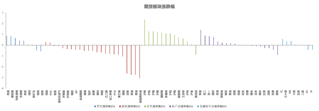 从板块整体表现看,有色多数上涨,能化多数下跌。