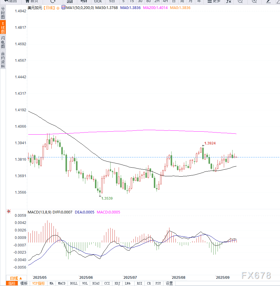 美元兑加元短期承压的主要原因在于美联储降息预期升温和美国劳动力市场疲软,同时加拿大经济数据显示就业走弱,为加元提供一定支撑。本周需重点关注美联储与加拿大央行政策会议结果,以及CPI数据公布情况,这些事件将直接决定短期汇价的方向。