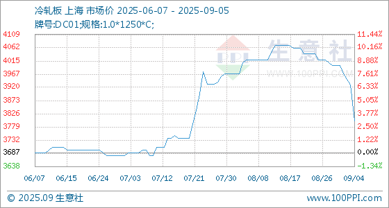 9月5日生意社冷轧板基准价为3800.00元/吨