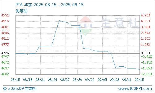 9月份以来国内PTA市场行情小幅下跌,华东地区PTA现货市场均价在4631元/吨,较月初下跌2.6%。近期,恒力惠州以及新凤鸣等检修装置于9月初陆续重启,国内PTA供应偏紧格局得到部分改善。当前行业开工率在77%附近,PTA前期靠开工维持去库,后期难继续,10月还有新装置投产预期,因此国内供应有持续增量预期。