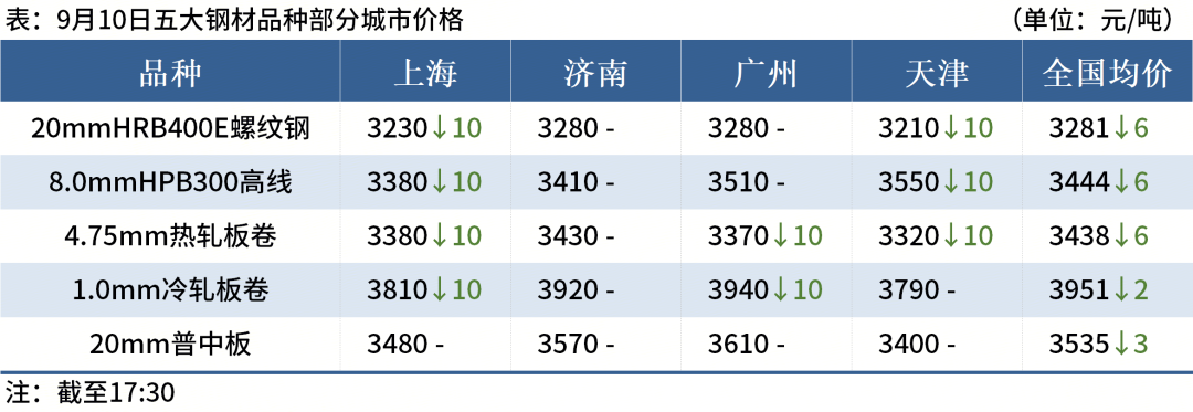 ◎9月10日,唐山迁安普方坯资源出厂含税下调10,报2990元/吨。