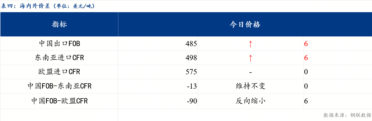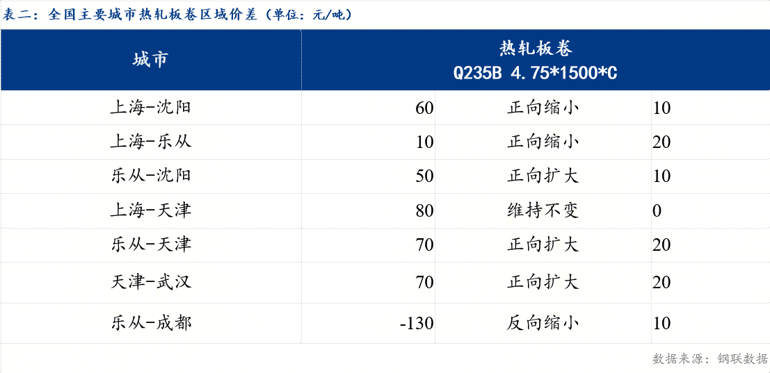 从区域价差来看,华东与东北价差60元/吨,较上一交易日正向缩小10元/吨;华东与华南价差10元/吨,较上一交易日正向缩小20元/吨;华南与华北价差为70元/吨,较上一交易日正向扩大20元/吨 。
