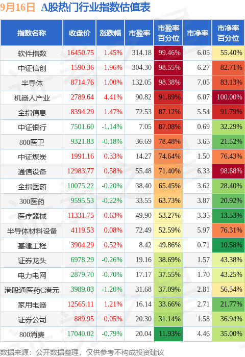 热门行业指数方面,软件指数的市盈率百分位较高,为99.46%。而800消费的市盈率百分位较低,为11.93%。