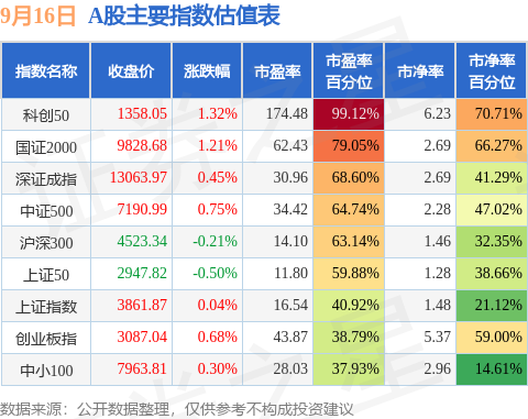 证券之星消息,9月16日A股收盘,上证综指指涨0.04%,报收3861.87点;深圳成指涨0.45%,报收13063.97点;创业板指涨0.68%,报收3087.04点。