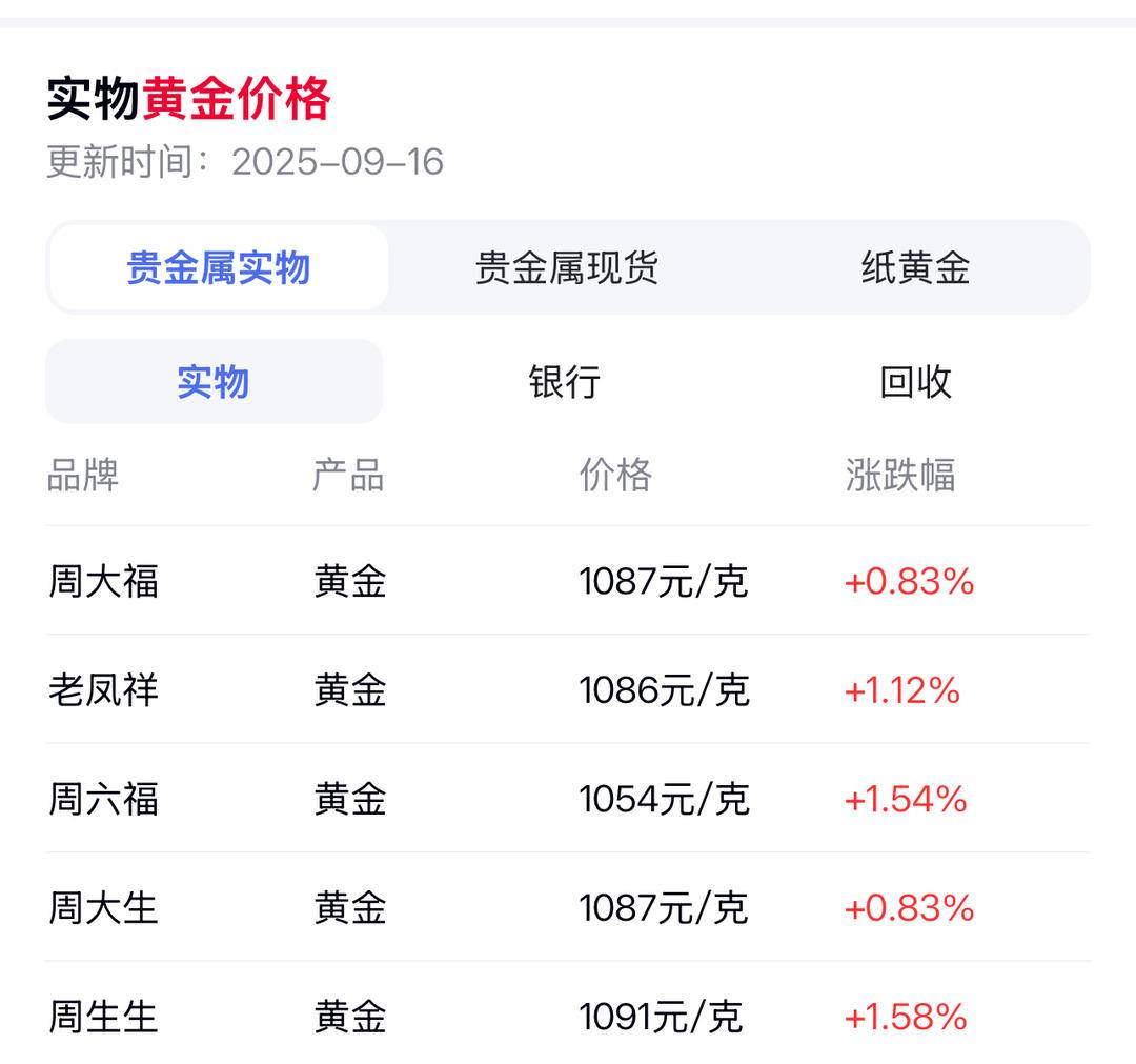 国内金饰品牌价格也随之上涨,部分品牌涨至年内最高。16日,周生生金饰价格为1091元/克,为年内最高,较前一日上涨17元;老庙黄金为1087元/克,为年内最高,单日上涨13元;老凤祥为1086元/克,为年内最高,单日上涨12元;周大福为1087元/克,单日上涨9元。