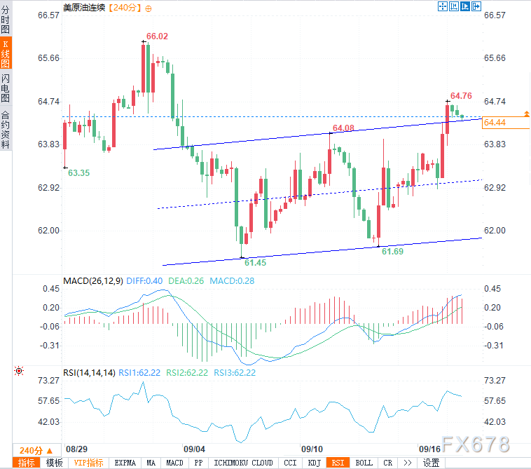 汇通财经APP讯——美国西德克萨斯中质原油(WTI)价格难以延续过去三个交易日的强劲反弹走势,周三(9月17日)亚欧时段震荡整理于64.50美元附近。然而在地缘供应中断风险的支撑下,油价仍持看涨倾向。