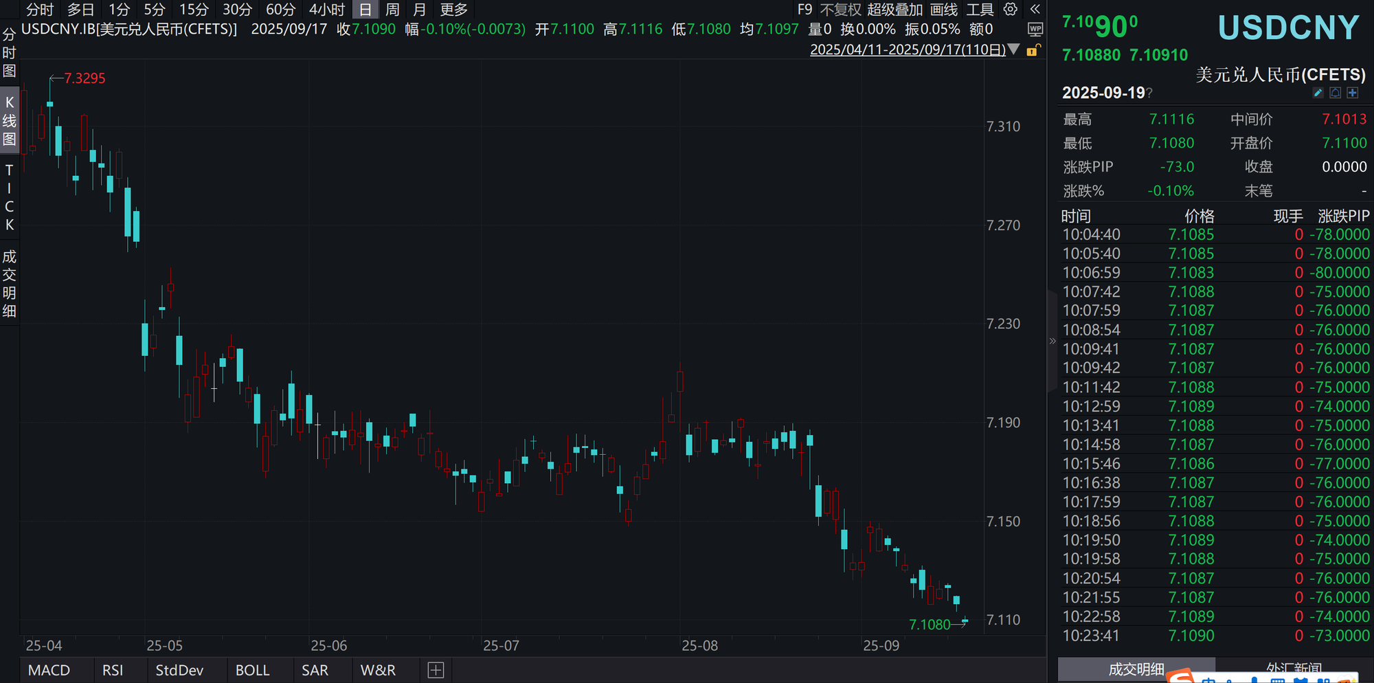 东方金诚首席宏观分析师王青对央广财经记者分析称:“近日人民币对美元汇价走高,主要是美联储9月议息结果迫近,且市场对年底前美联储还可能有进一步较大幅度降息的预期,美元指数显著下行,为包括人民币在内的非美货币带来较强的被动升值动能。另外,近期国内股市保持强势,外资加速流入,这在带动结汇需求增加的同时,也在改善汇市情绪。”