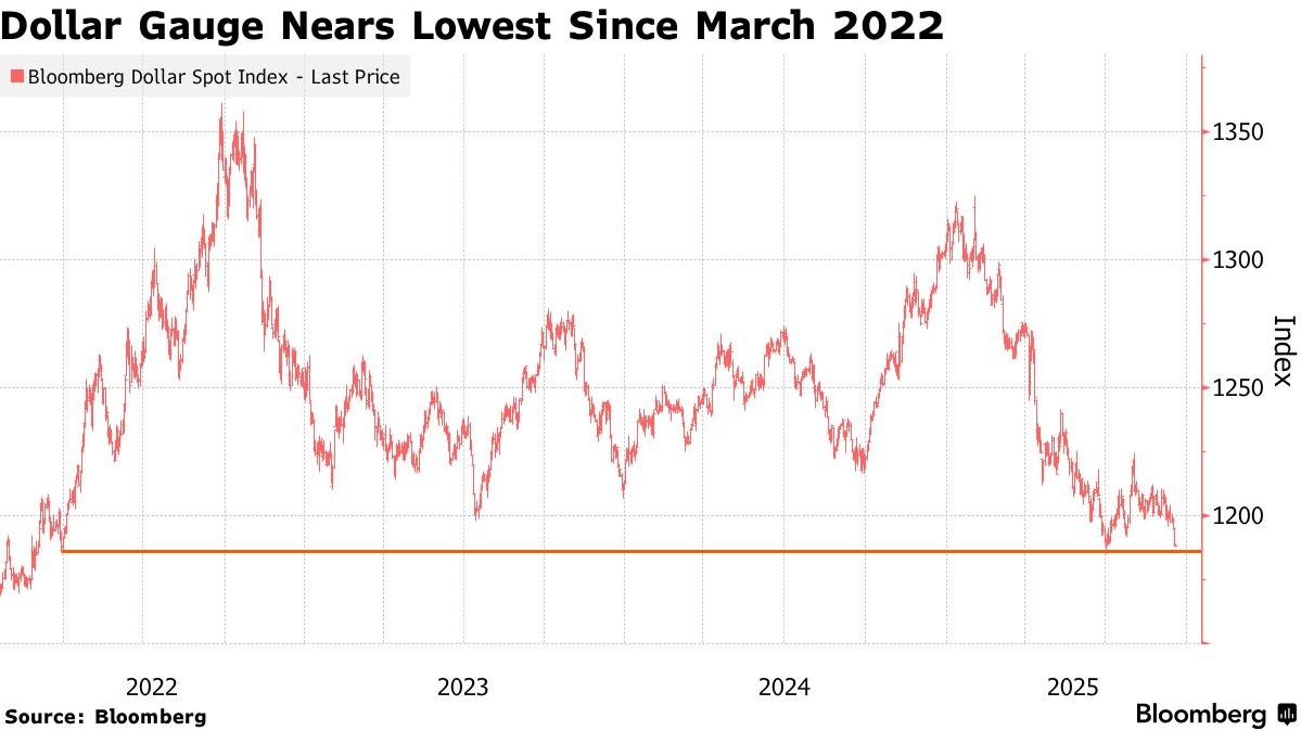 在美联储即将作出决策之际,彭博美元现货指数已逼近2022年3月以来的最低水平,连续第三日下跌0.1%,市场正密切关注央行政策动向及未来降息节奏指引。欧元与日元引领主要货币兑美元走强,交易员在等待美联储公告的同时,也在评估年内降息路径的更多细节。