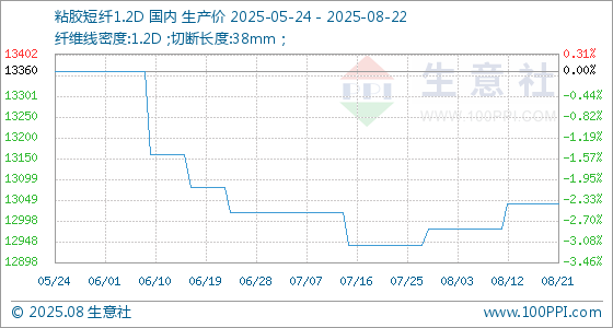 8月22日生意社粘胶短纤1.2D基准价为13040.00元/吨