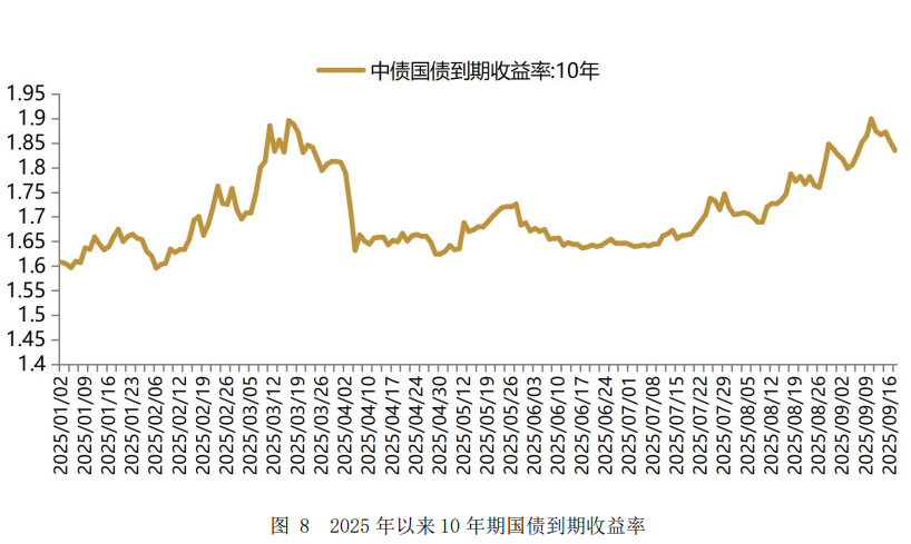 国内债券市场仍将上有顶下有底,10年期国债收益率或将向1.7%靠拢。自去年“924”一揽子增量政策实施以来,下调政策利率以及存量房贷利率驱动三四季度的经济修复,“6+4+2”万亿的财政政策实际上主要是起到“置换减压”作用而不是增量刺激,并且化债思路是用长期限的低利率去置换高利率,随着整体市场利率的走低债券市场走牛。今年6月以来随着“股债跷跷板”效应以及反内卷带来的物价上调预期影响,10年期国债到期收益率出现波动上行。但是9月如果再次出台增量政策,或依然将是货币政策先行,此外准财政政策工具——政策性开发性金融工具虽然有利于投资回升以及融资需求撬动,但这也同时意味着重点支持领域的生产有可能进一步扩张,实际上不利于物价的回升。四季度用于项目投资的新增专项债有助于形成实物工作量并托底固定资产投资,但或难以对冲房地产投资的跌幅扩大。特别是居民部门整体仍处于去杠杆过程中,股票市场在居民资产配置中占比仍低,风险偏好回升带来的存款搬家现象能持续多久,以及多少比例会流向权益市场依然存疑。