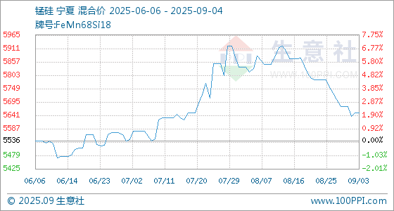 9月4日生意社锰硅基准价为5652.00元/吨