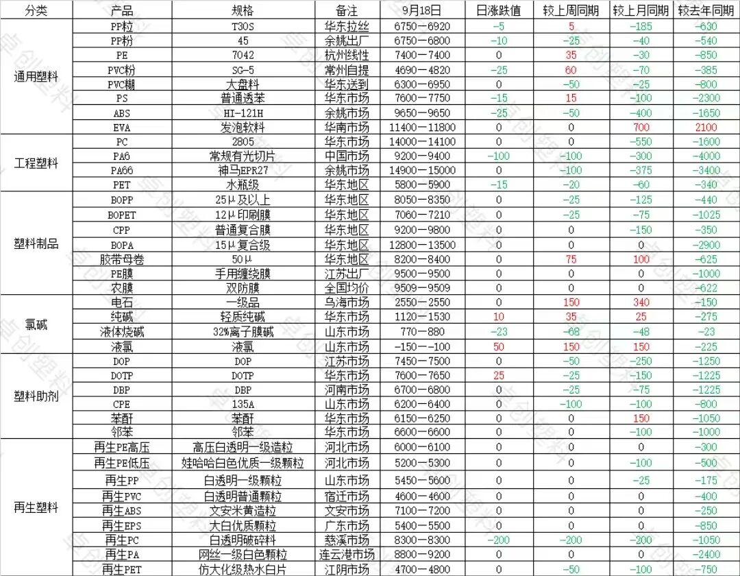 备注:以上表中所取价格为各产品代表市场或是代表区域价格,价格为截止到16:30的收盘价格,更多市场价格及详情内容请关注卓创资讯各产品网站或手机客户端。