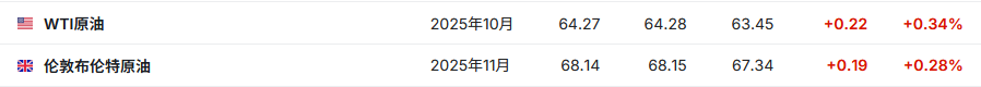 3. 截至发稿,WTI原油涨0.34%,报64.27美元/桶。布伦特原油涨0.28%,报68.14美元/桶。