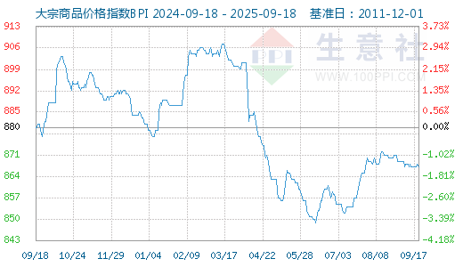 9月18日大宗商品价格指数BPI为866点,较昨日下降了135.52%31.21%