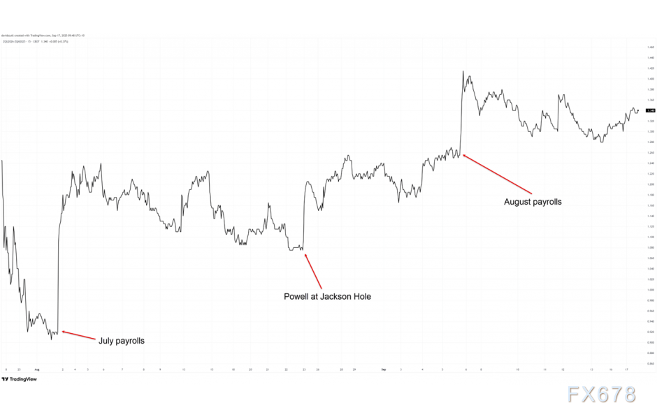也存在差异——例如去年此时并未出现对美联储独立性的担忧,且本次无需应对总统大选因素——但除此之外的背景格局却惊人相似,一年前市场预计到2025年9月将降息近250个基点,而实际降息125基点,劳动力市场状况持续超预期坚挺。