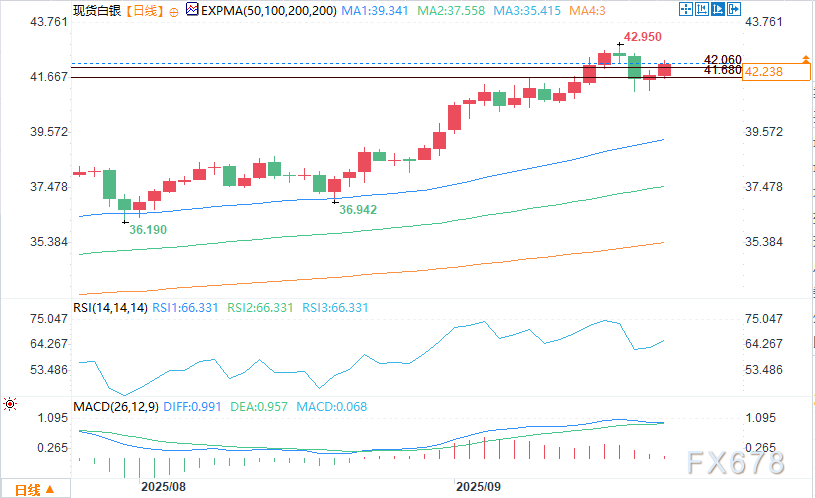 汇通财经APP讯——周五(9月19日)欧盘时段,白银价格盘中报42.28美元,涨幅1.17%。未来走势将决定多头是否有能力推动价格冲向历史高点,或是即将迎来回调。
