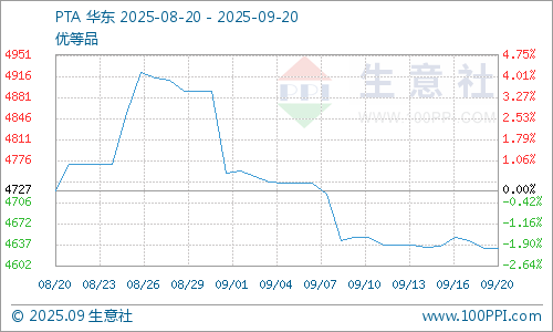 PTA工厂计划重启装置推迟,整体需求端变化不大,成本端支撑尚可,本周(9月15-19日)国内PTA市场窄幅震荡为主。据生意社商品行情分析系统,截止9月19日PTA华东地区市场均价在4631元/吨,较周初下跌0.01%。