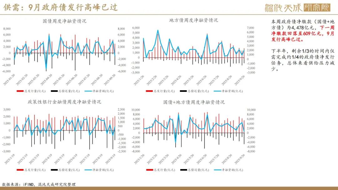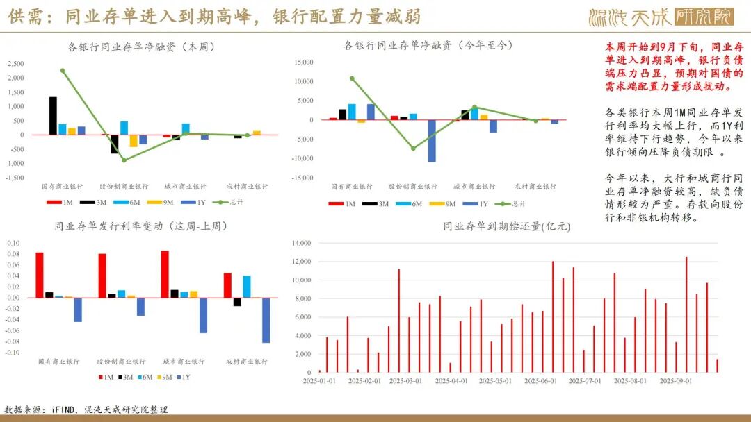 供需层面:下周政府债供给放缓,但同业存单到期量维持高位,市场总体维持紧平衡。