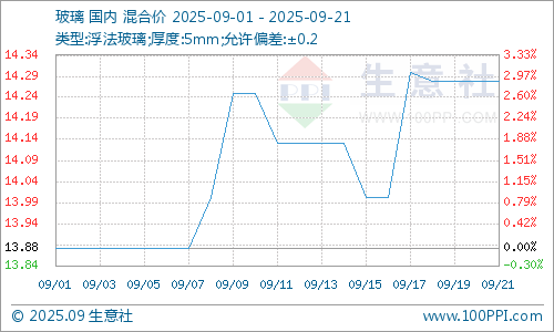 需求方面:据生意社商品分析系统显示,本周玻璃行情强势上涨,截止9月21日市场均价在14.28元/平方米,与9月15日价格14.00元/吨相比涨幅2.00%。玻璃市场产线运行稳定,传统旺季下游补货积极,场内交投氛围向好,市场心态挺涨,玻璃价格强势上调。