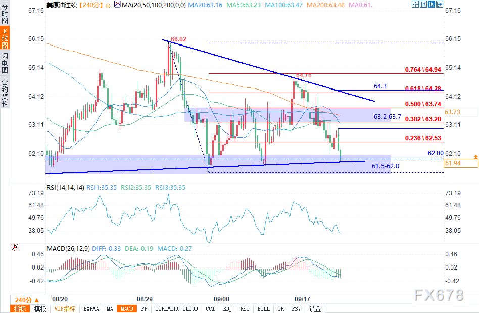 下方关键支撑位在61.5-62.0区间,这是前期价格多次获得支撑的区域,如果价格下跌至此区域,可能会受到支撑出现反弹。