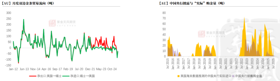 瑞士恪守“主权黄金例外”原则,英国似未从严执行:2022 年中迄今,英瑞两国黄金贸易流量的缺口,恰与央行购金节奏暗合,进一步佐证上述判断。