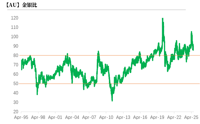 自4月以后,各国央行购金行动有所放缓,促使金银比价阶段性回落。然而,若如前文所述,央行购金的行为并未终结甚至售金,同时白银在美联储降息周期中表现不稳定,金银比则难以长期回落。