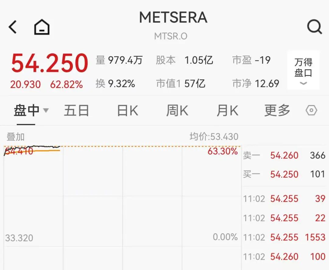 抗肥胖药物开发商Metsera一度涨超60%。消息面上,据券商中国,辉瑞已接近达成一项交易,计划以高达73亿美元的总价收购Metsera。报道称,辉瑞将以每股47.50美元的现金收购这家总部位于纽约的公司,并根据特定业绩里程碑的达成情况,额外支付最高每股22.50美元。