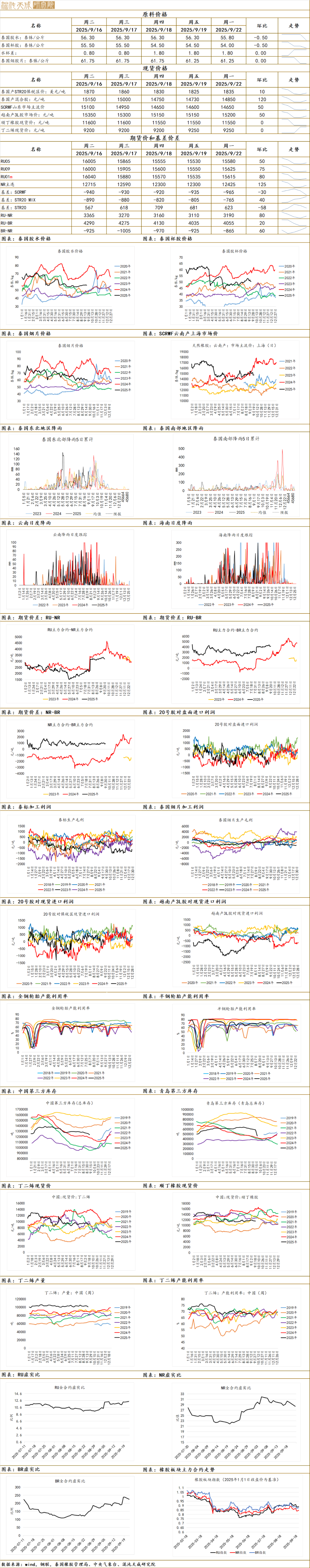 3.机构消息:根据西双版纳统计局9月18日《2025年8月西双版纳州国民经济主要统计指标》数据显示,2025年1-8月云南西双版纳州累计加工标准天然橡胶52.41万吨,同比去年的39.09万吨,增加13.32万吨,增幅34.1%!(西双版纳统计局)