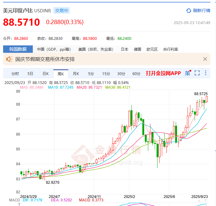 随着美国签证费上涨,印度卢比跌至历史最低点。金投网数据显示,截至9月23日,卢比兑美元汇率下跌至88.5710,跌破前低水平。